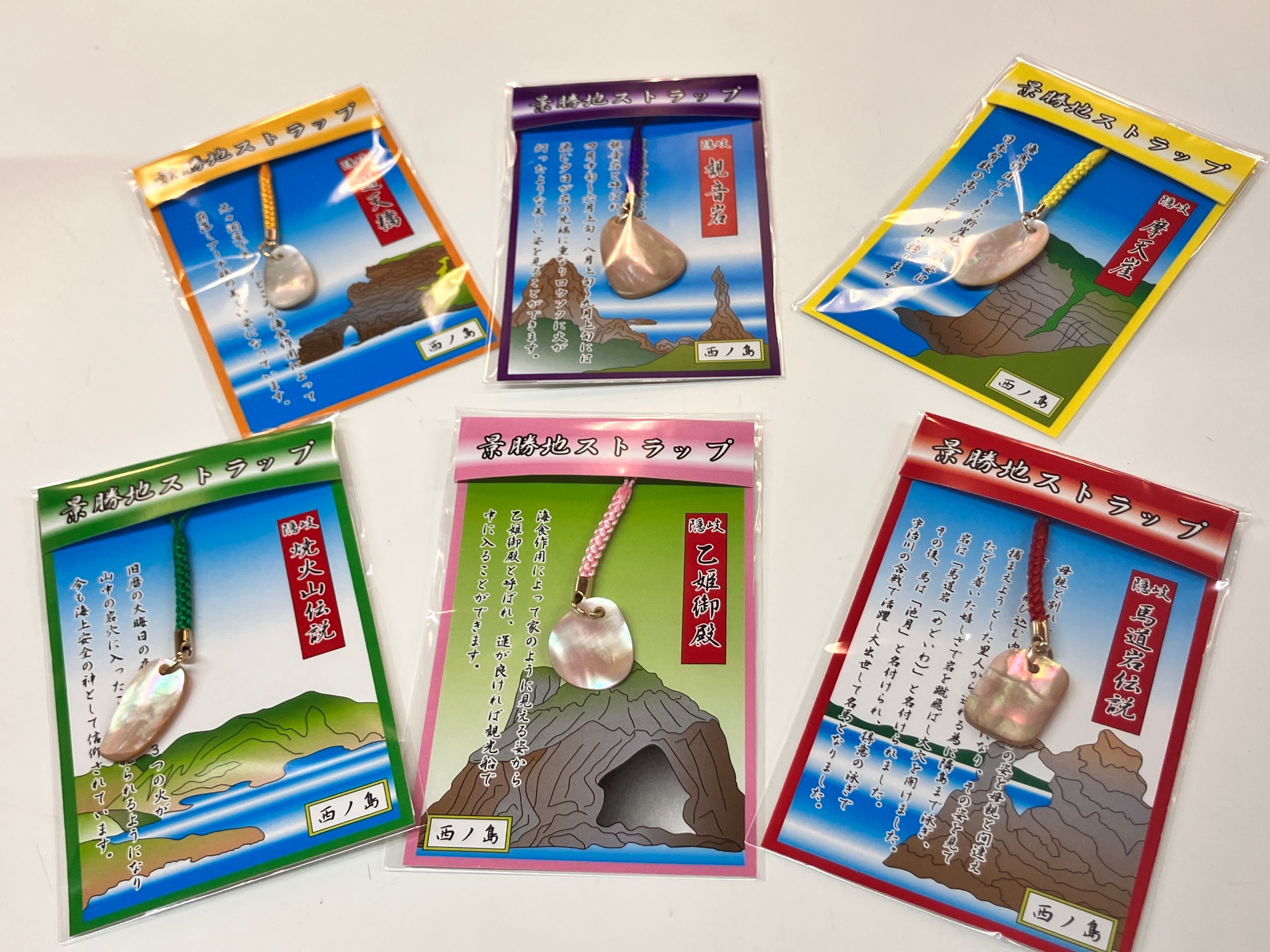 隠岐の旅路の思い出に西ノ島限定「景勝地ストラップ」が新商品として手作り販売。