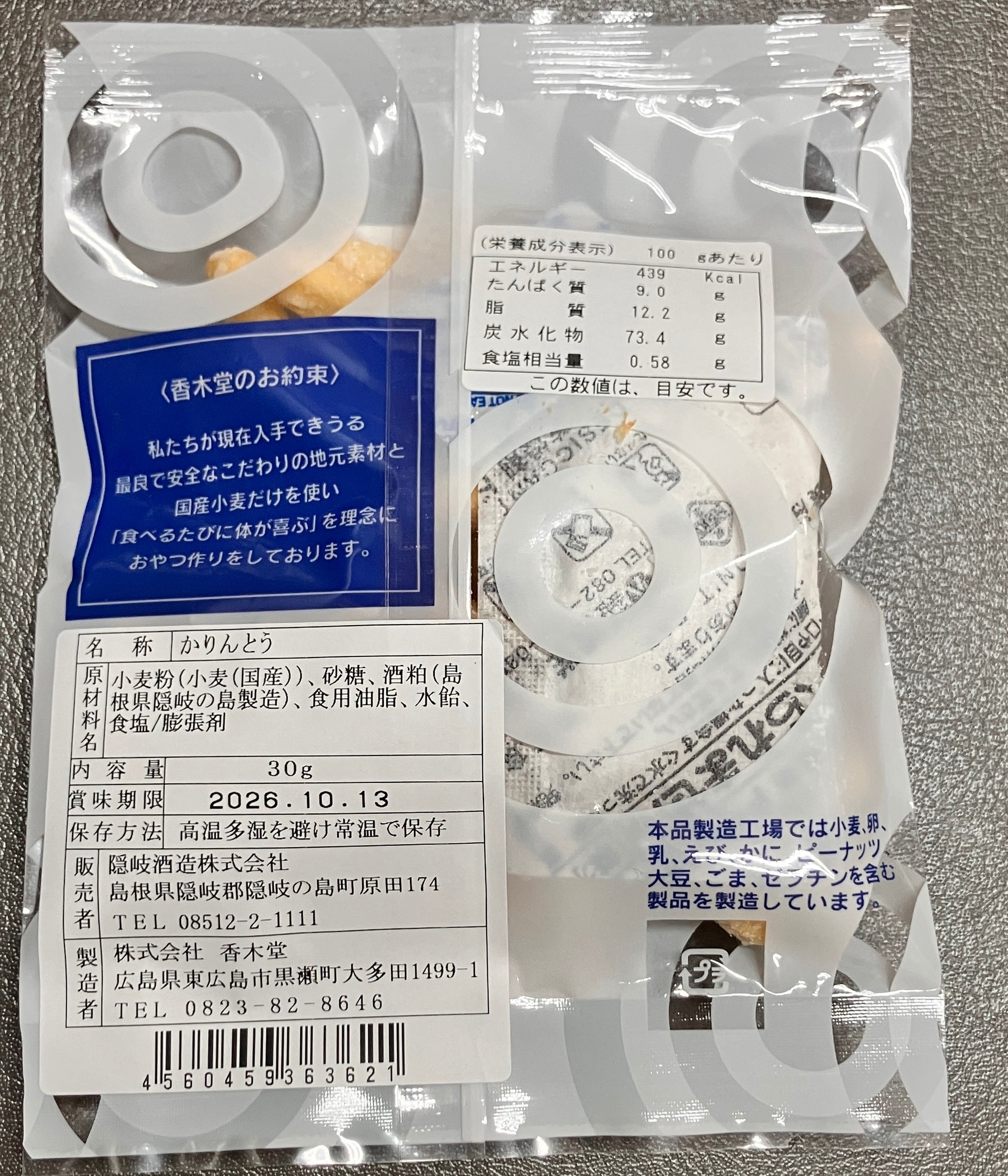 ※湿気を避けて保存し、開封後はお早めにお召し上がりいただくことをおすすめします。隠岐の魅力を詰め込んだこの酒粕かりんとうを、ぜひご堪能ください!